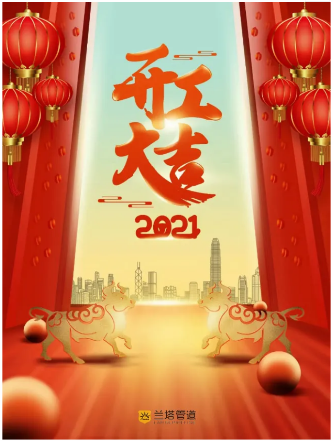 雖然過去的一年充滿困難與挑戰(zhàn),但是蘭德人百折不撓、迎難而上的精神,將每一次的艱難險(xiǎn)阻都化為前進(jìn)成長的動力,并創(chuàng)造出一個個奇跡。這就是優(yōu)秀的你們,更是優(yōu)秀的團(tuán)隊(duì),2021,相信蘭德家人會目標(biāo)更遠(yuǎn)大,目標(biāo)更堅(jiān)定,全力以赴,一步一腳印創(chuàng)造出更多輝煌成績。同樣,在此祝愿所有客戶朋友、供應(yīng)商伙伴們在新的2021年,事業(yè)一帆風(fēng)順步步升,萬事如意展鴻圖,感謝您對蘭塔管道長期以來的大力關(guān)愛和鼎力支持,感恩一路有您!